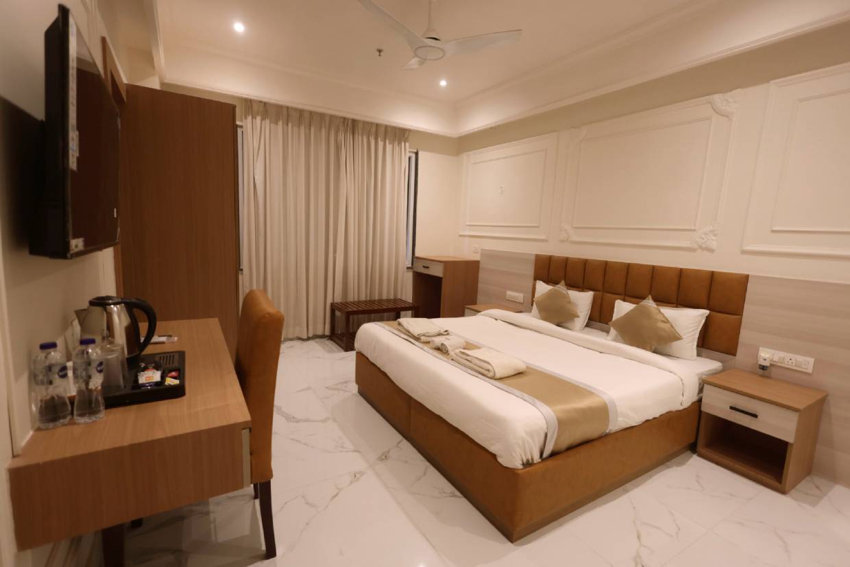 Perfect for couples or friends, the Super Deluxe Double Room offers a combination of luxury and modern comfort. The air-conditioned room features a cozy double bed, TV, and tea/coffee facilities.